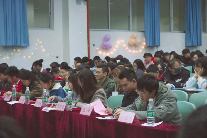 本次辩论赛由教育学院学生会主席程海瑗、智能制造学生会主席柯敏、马克思主义学院学生会主席朱洪黎、体育学院团总支学生第二副书记陈坤、经济管理学院学生会副主席许利奎、土木工程学院团总支学生第一副书记陈钇潼、校辩论队优秀辩手王悦鸣、院辩论队优秀辩手韩鹏担任赛事评委。同时,到场的还有我院百余名学子。