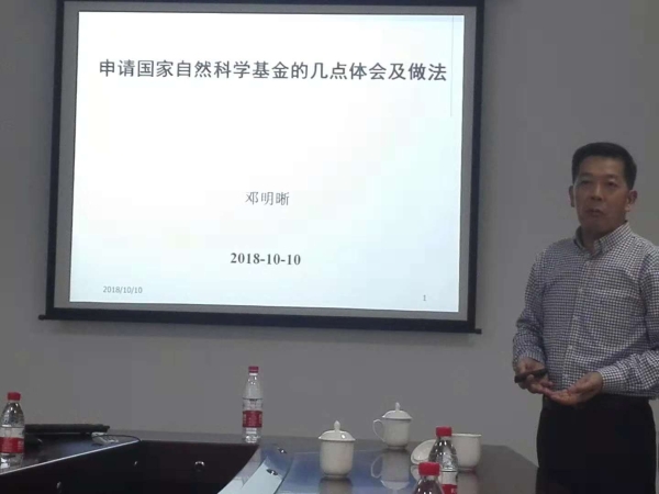10月10日下午,邓明晰教授应邀为建筑工程学院作2019年国家自科基金申报培训,培训会在格物楼C603举行。建筑工程学院院长助理张海龙主持会议,建筑工程学院所有申报国家自科和国家社科的人员参加了培训。