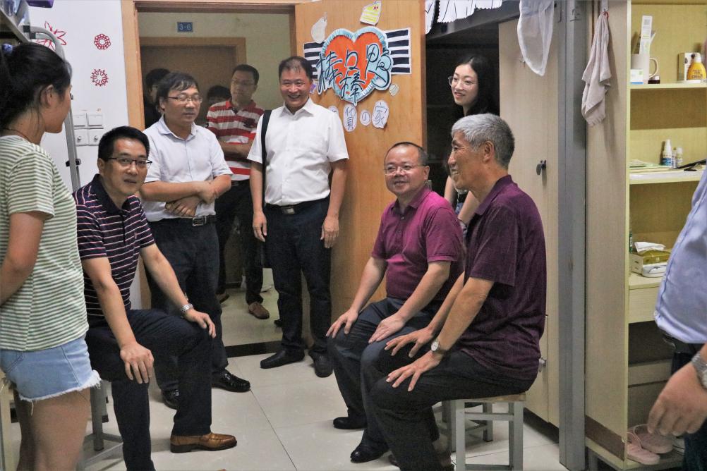 9月8日下午五点,为了解我院学生住宿和生活情况,帮助新生解决生活和习惯问题,引领新生尽快适应新生活新环境,重庆文理学院副校长漆新贵、党政办和教学办负责人黎志和王东强以及我院党总支书记何小兵、副院长张海龙、副院长沈中友、学工办负责人左雨婷及相关辅导员前往杏苑新生宿舍进行走访慰问。同时与新生家长进行了深入交流,使家长也感受到学校各领导老师的深切关怀。