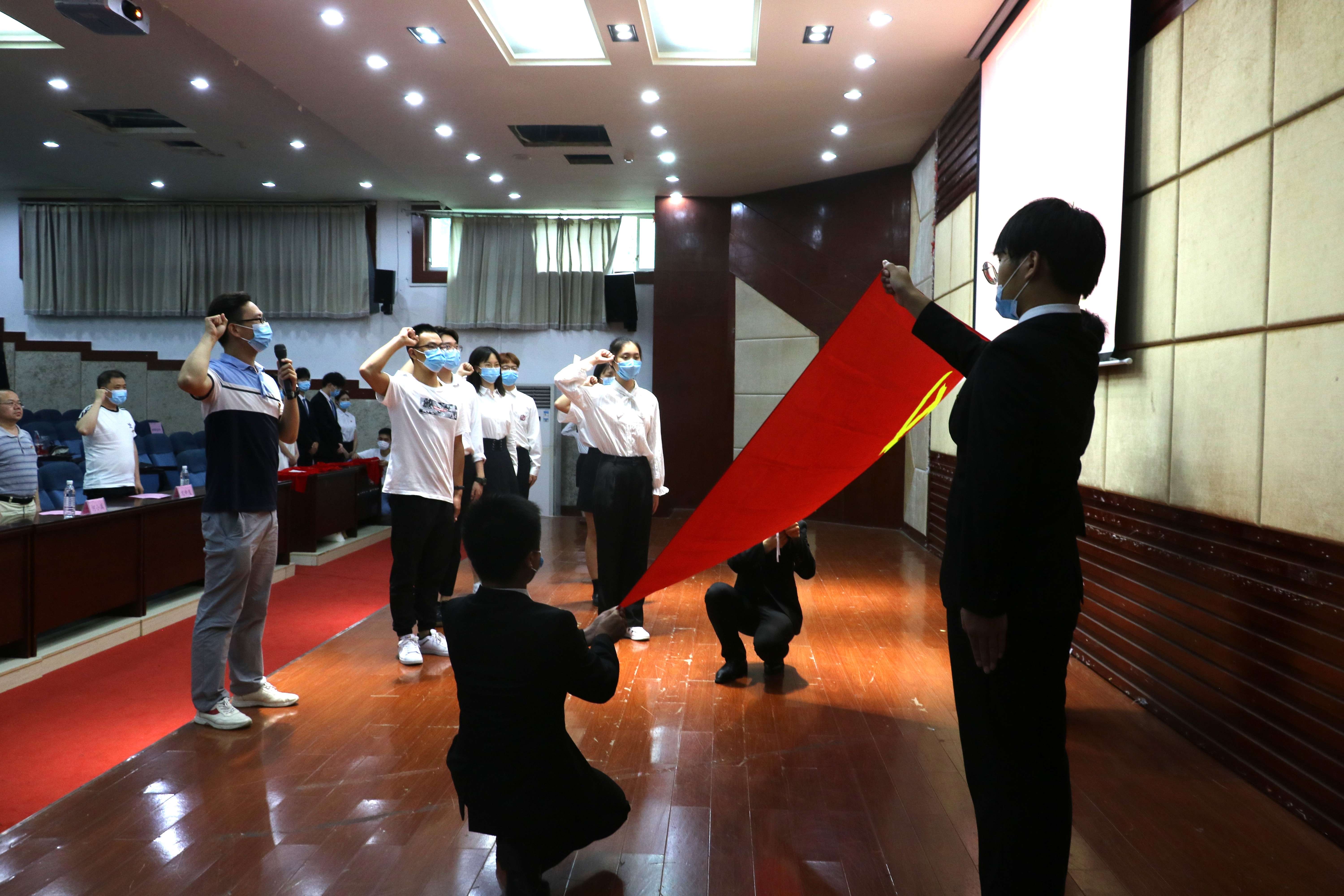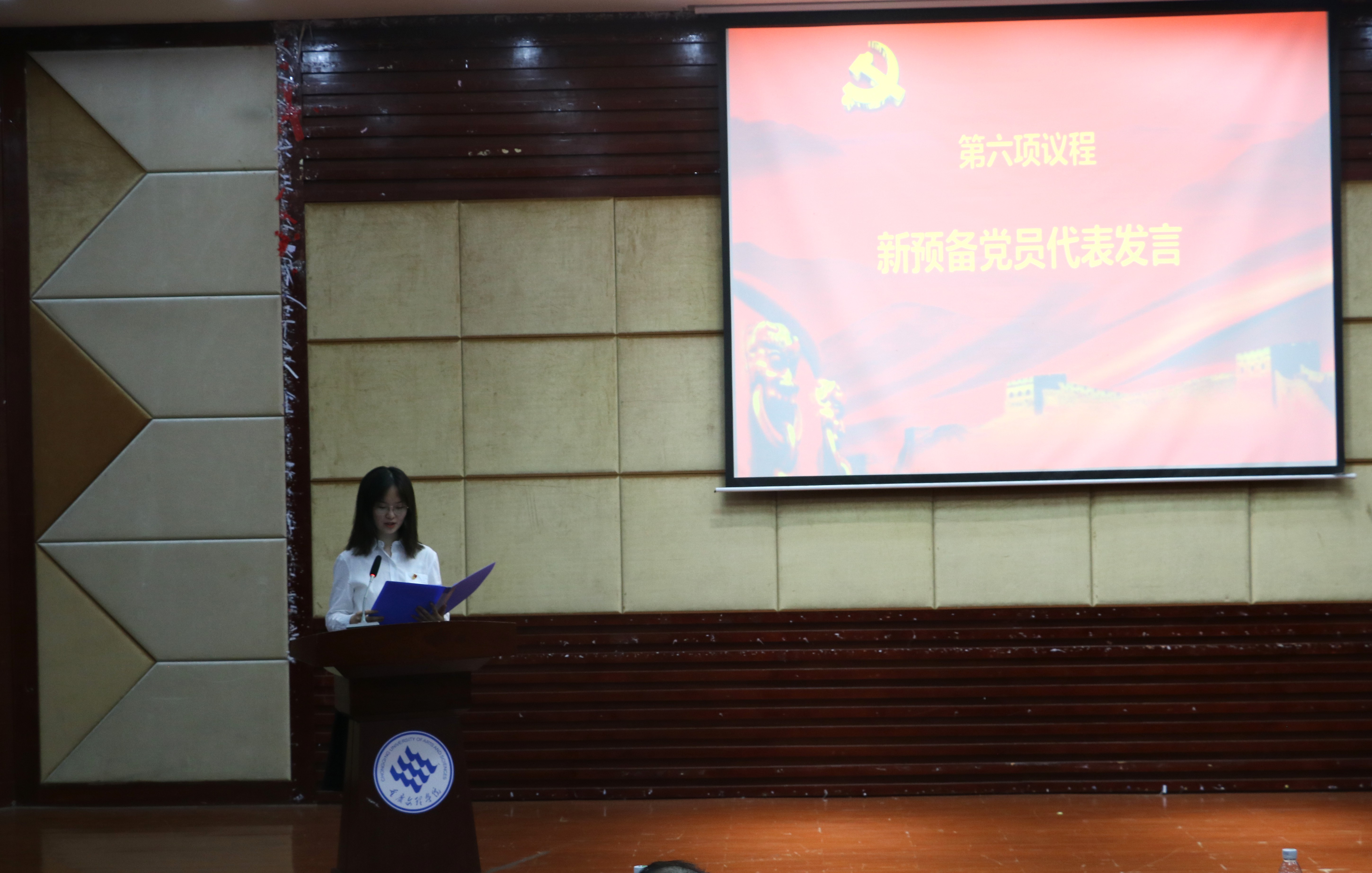 99年的春华秋实,我们一路守护初心。在庄严的氛围中,面对鲜红的党旗,冯继威带领本学期新发展党员宣誓并引导全体党员重温誓词,警醒同志们时刻牢记历史使命,不忘初心,承担时代责任。随后,何小兵、沈中友、张碧波、左雨婷等党员老师们为新发展党员们进行了授徽。