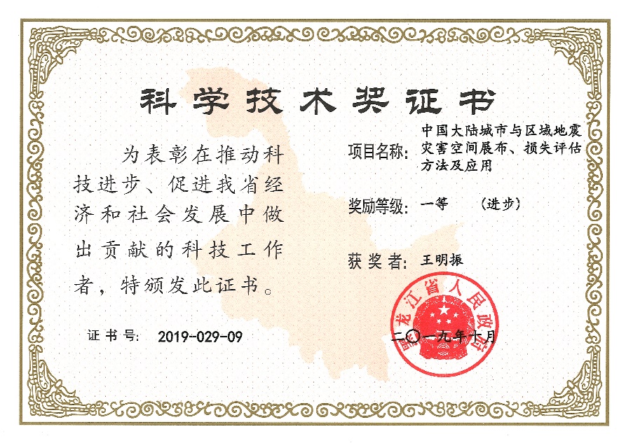 2019年10月18日,黑龙江省科学技术奖励委员会公布了2019年黑龙江省科学技术奖,我院王明振副教授参与中国地震局工程力学研究所孙柏涛研究员主持完成的“中国大陆城市与区域地震灾害空间展布、损失评估方法及应用”项目荣获2019年度黑龙江省科学技术奖(科技进步类)一等奖。