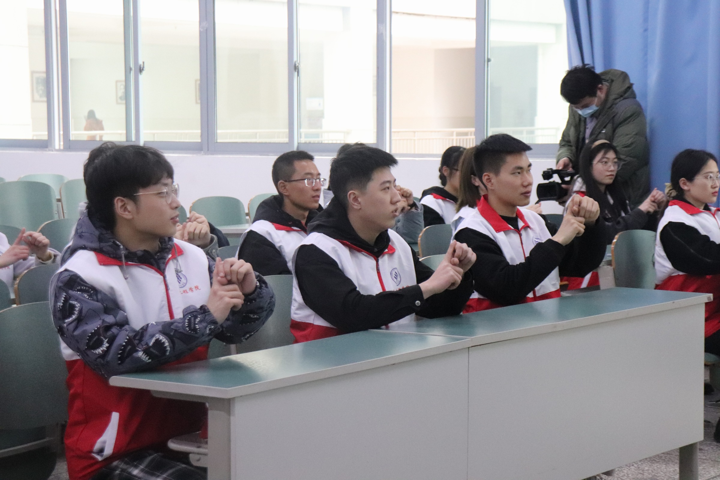 区残联副理事长崔学彬具体阐述了手语服务发展脉络,对聋哑残疾人在生活中遇到的问题进行了分析,也提到志愿者们将在重大集会节庆活动中亮相,和残疾人朋友一起“歌唱”祖国,并号召我院学子不仅要在学业方面刻苦钻研,更要走出校门,积极加入到助残事业当中,为创建一个残健融合的和谐社会而共同努力。