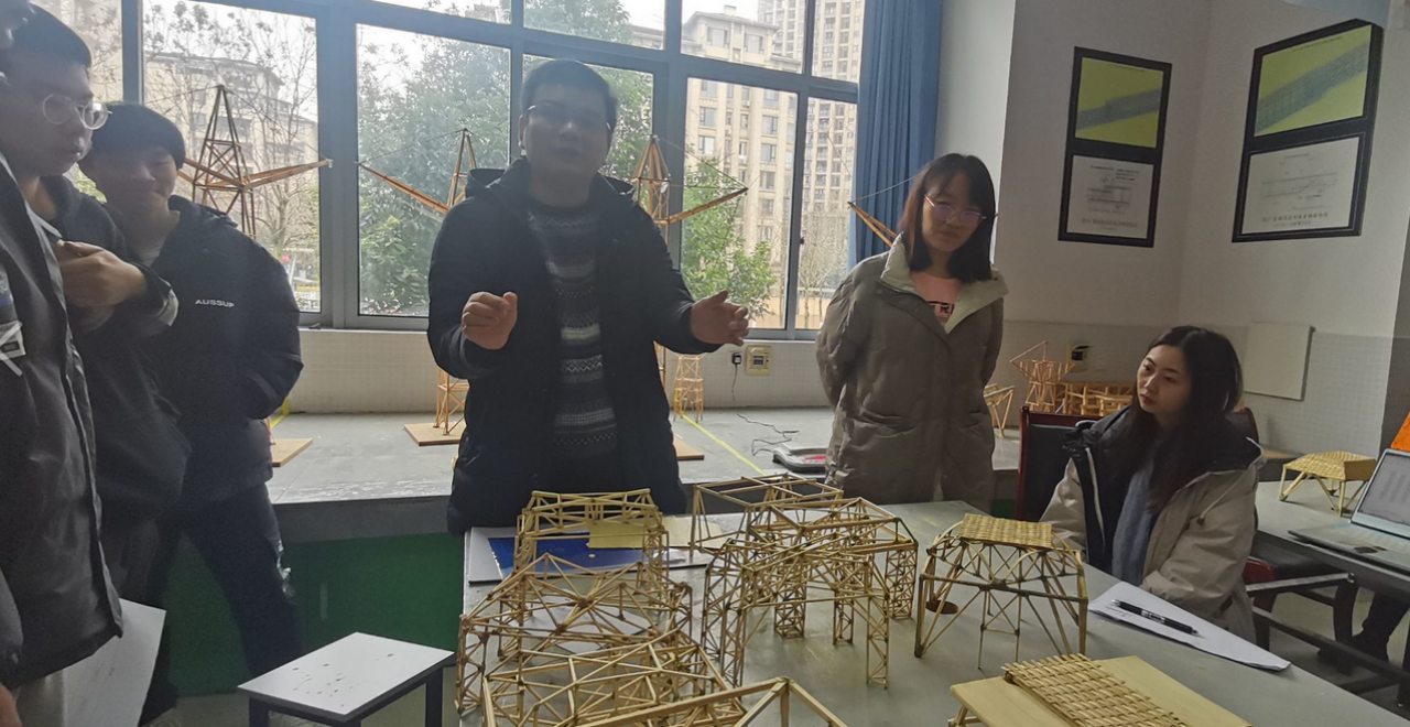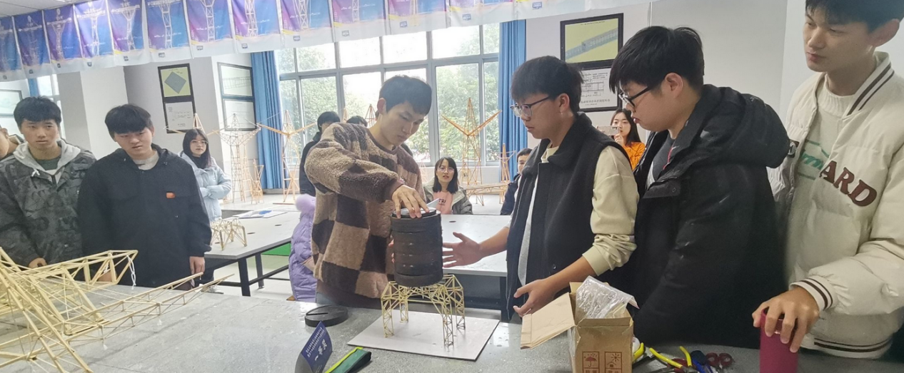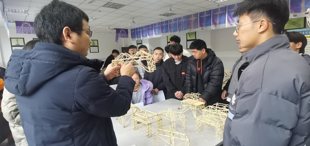 在赛场上,每支队伍都展现了自己独特的结构艺术,运用不同的思维和理念碰撞出了绚丽的火花,每一个模型都不仅仅只是外观的精美,同时还能承载高强度荷载的考验。杨惠会老师和王明振老师在比赛过程中为每组参赛选手的作品都做出了较高的评价,并提出了宝贵的建议,让选手们都获益匪浅,受益良多。