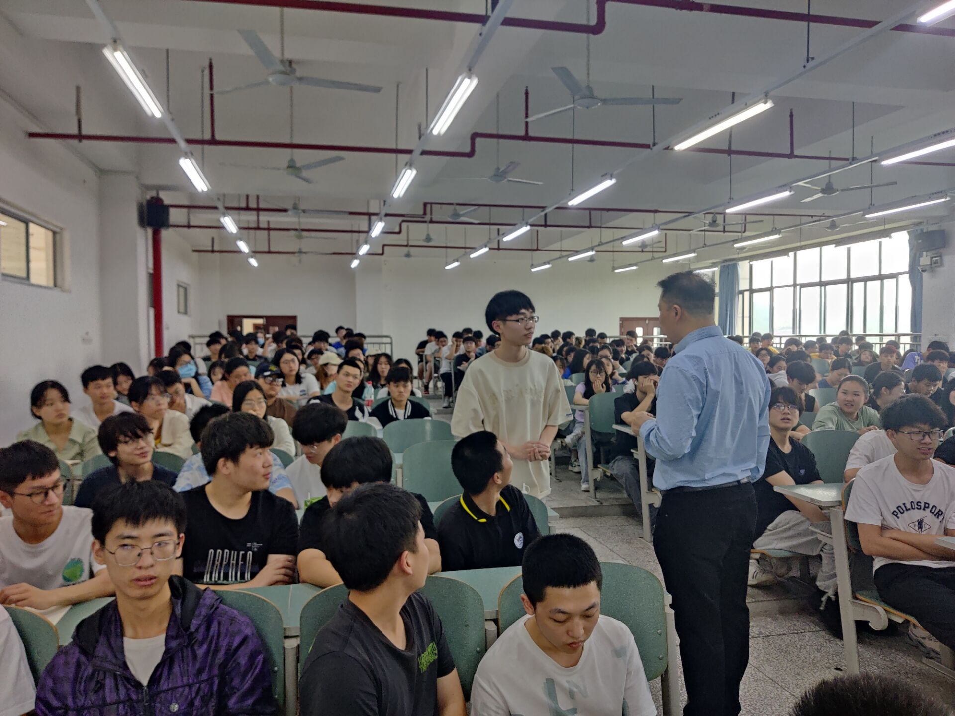 沈中友首先对大学生在校的学习问题谈了自己的意见,他表示,极少数同学们的学习积极性不高,学习动力不足等问题,根本原因在于同学们对未来发展的认识不清晰,应该及早树立目标,博览群书,提升自我。同时沈中友运用有关案例对同学们的人生目标、学业规划、为人处事、寝室生活等方面进行了深入分析,通过案例教育,向同学们提出大学生应该珍惜在校学习机会,打好专业基础,做好未来就业的准备。最后他就同学们提出的问题,给出了自己的建议。