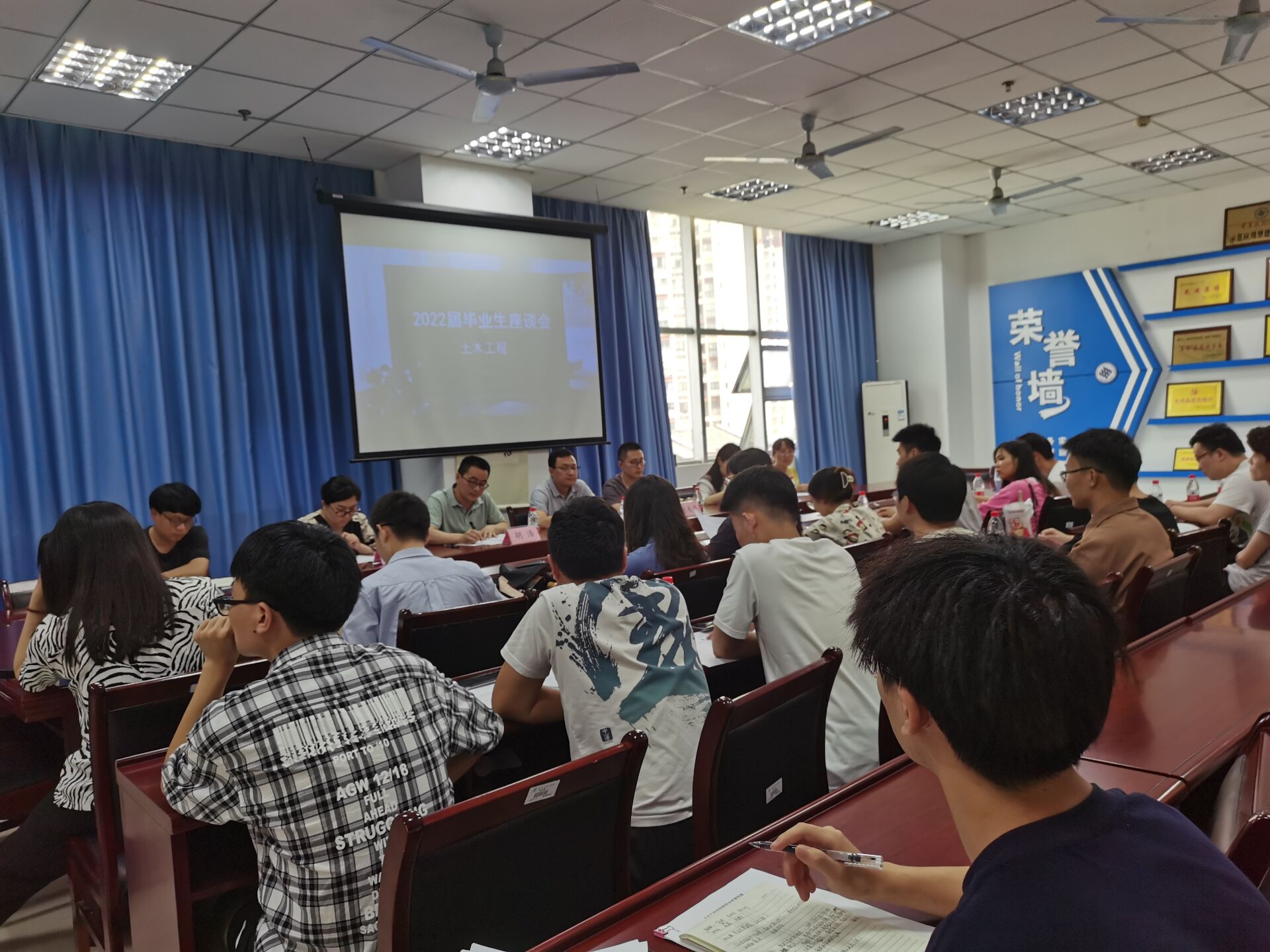为充分听取2022届毕业生关于学院人才培养和建设发展的意见建议,学院于5月30日至31日召开了2022届毕业生座谈会。本次座谈会分专业在格物楼C603、C610会议室先后召开,党总支书记蒋礼文、副书记兼副院长张海龙、副院长沈中友分别参加了工程造价、土木工程、工程管理专业的毕业生座谈会,相关教学系主任、教师代表和毕业生代表共59人参加本次会议。