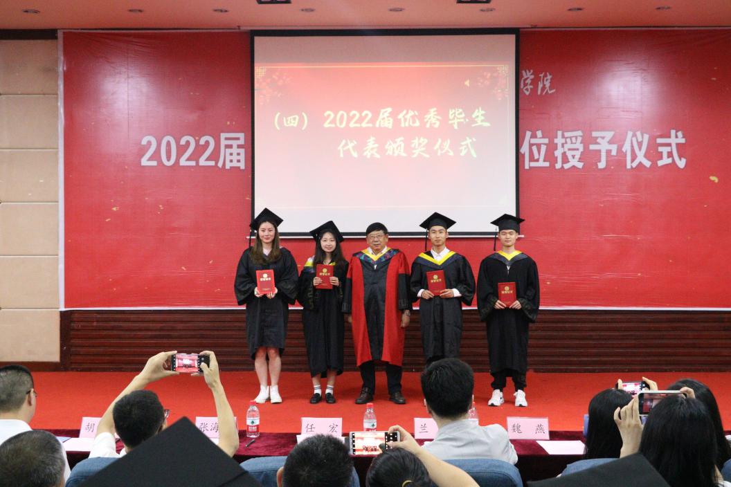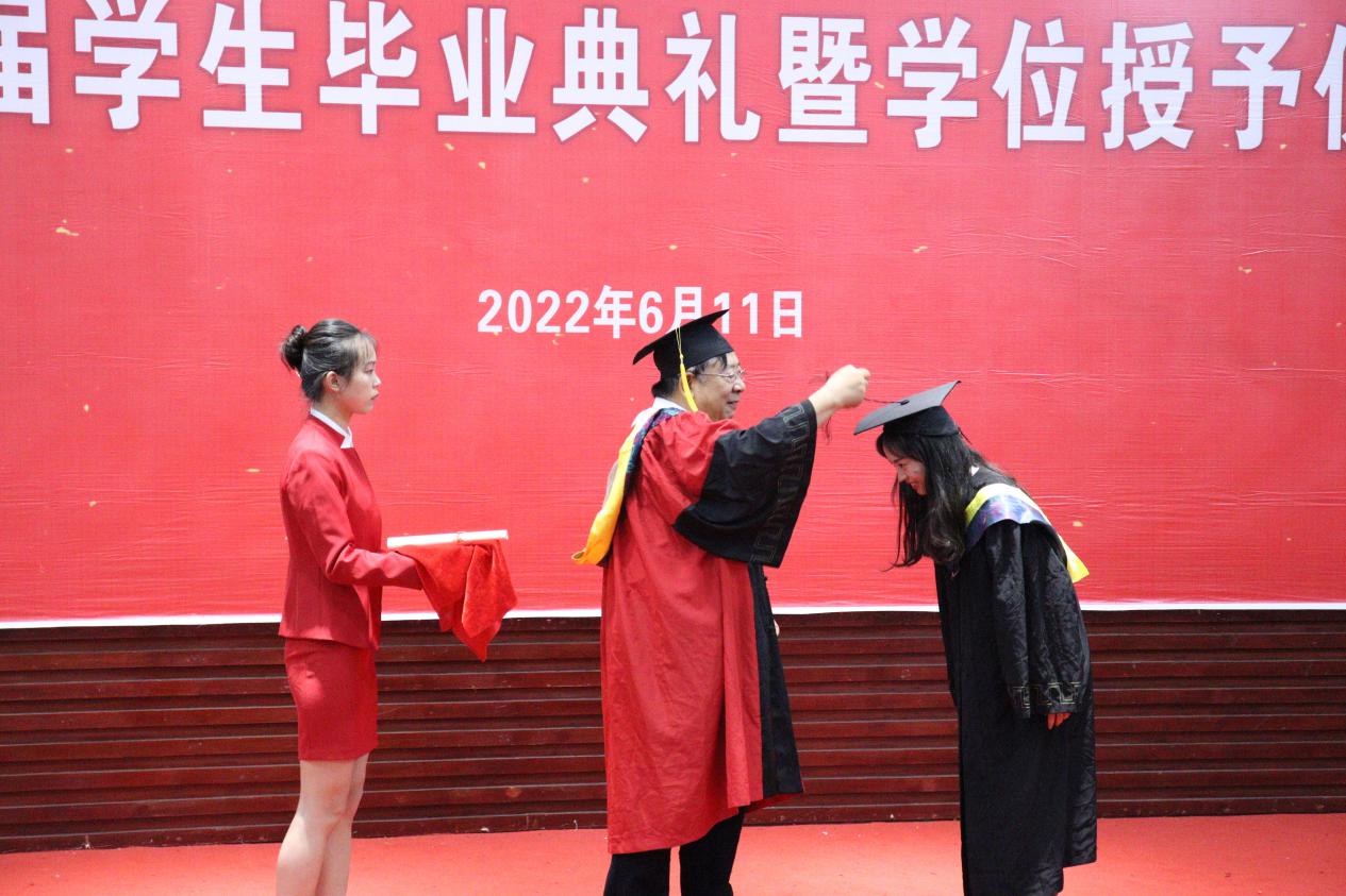 任宏院长为2022届毕业生拨穗正冠授位并致辞任院长在致辞中对毕业生们提出两点希望:一是希望大家要“大气为人”“大智谋事”“大爱行天下”,要不断领悟为人做事的道理,探寻和积累立身处世、达济天下的人生智慧!努力成为未来社会的引领者。二是希望大家继续坚守“进德、修业、博文、达理”的文理理念,要勇敢接受考验,永不灰心、永不气馁、永远青春、永远少年!