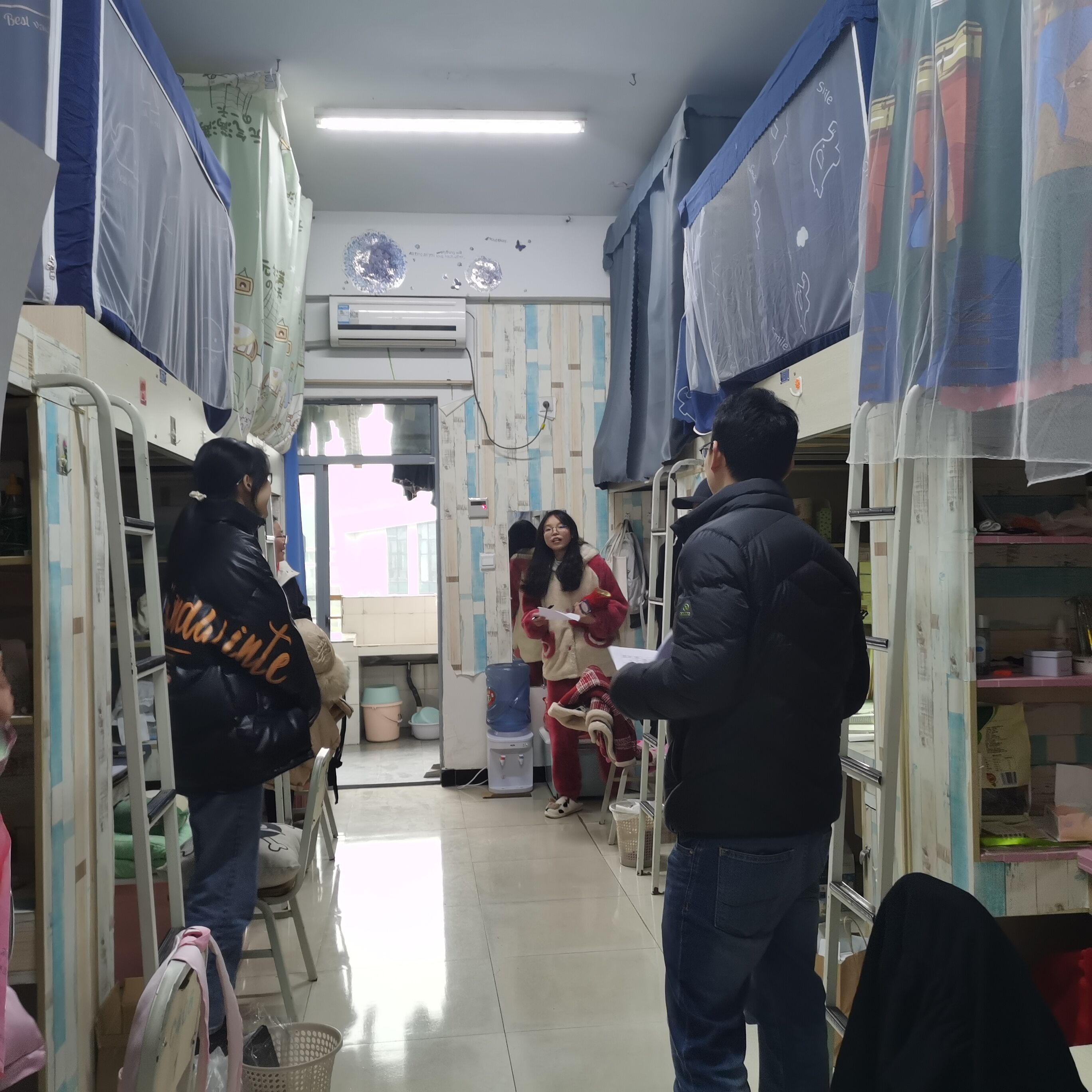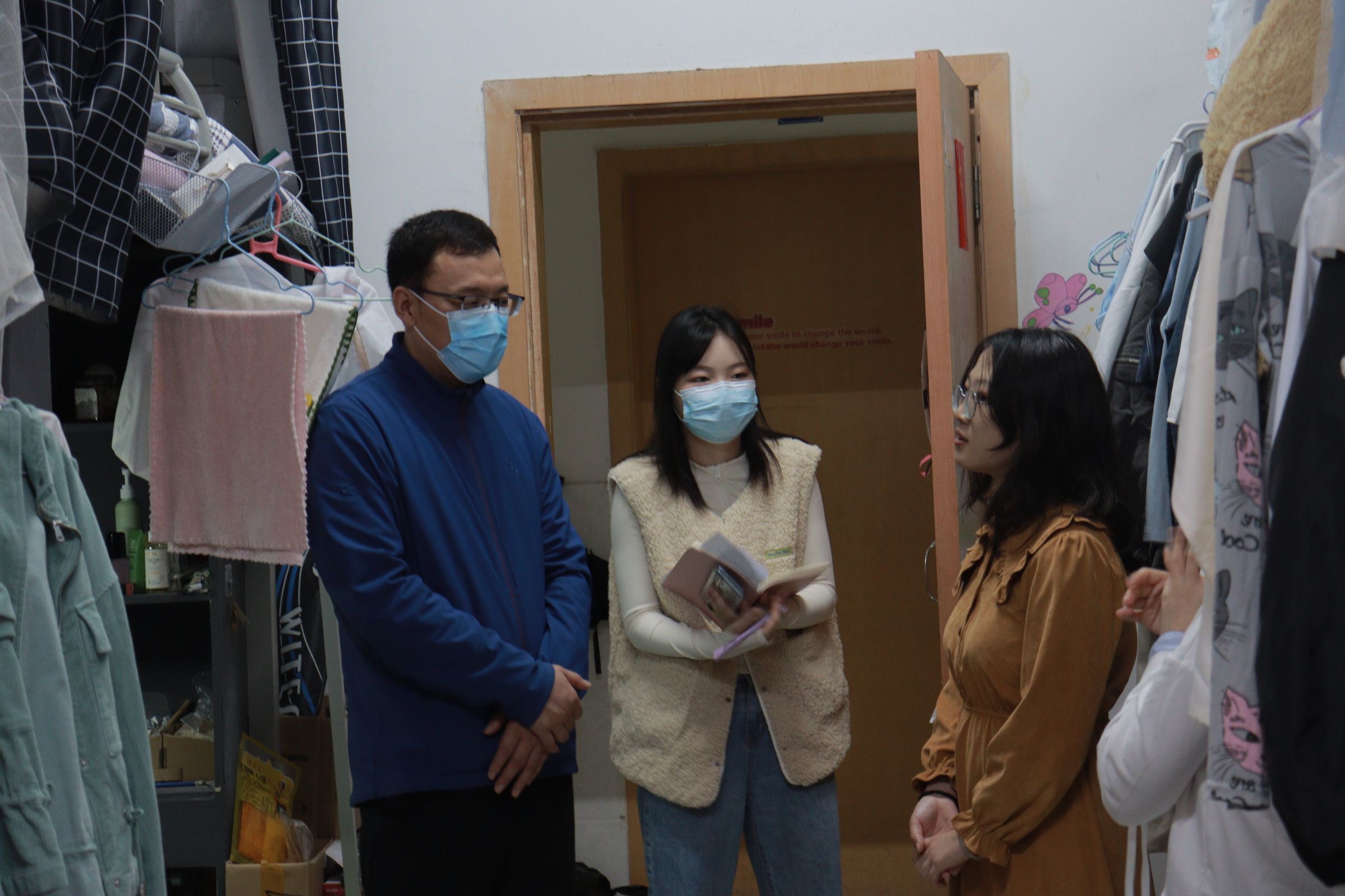 为深入了解学生思想动态和生活学习情况,切实加强疫情防控期间学生管理服务,提高学生防疫意识,10月31日至11月2日期间,学院党总支书记蒋礼文、副书记兼副院长张海龙、党政办主任徐建卿、21级辅导员冯继威带队走访学生寝室,给同学送去亲切地关怀和慰问。