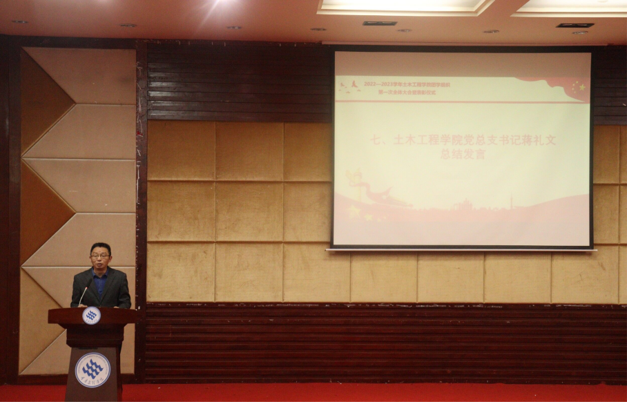 最后,蒋礼文在总结发言中提出三点:一是感谢团学组织每一位学生干部的辛勤付出,肯定了学生工作的成绩,展望了学院美好的未来;二是要加强学习二十大精神,“永远听党话,跟党走”,以良好的精神状态奋进新征程;三是要强化身份意识,明确个人奋斗目标,将国家的发展与个人的目标紧密结合起来,以实现中华民族伟大复兴为己任。