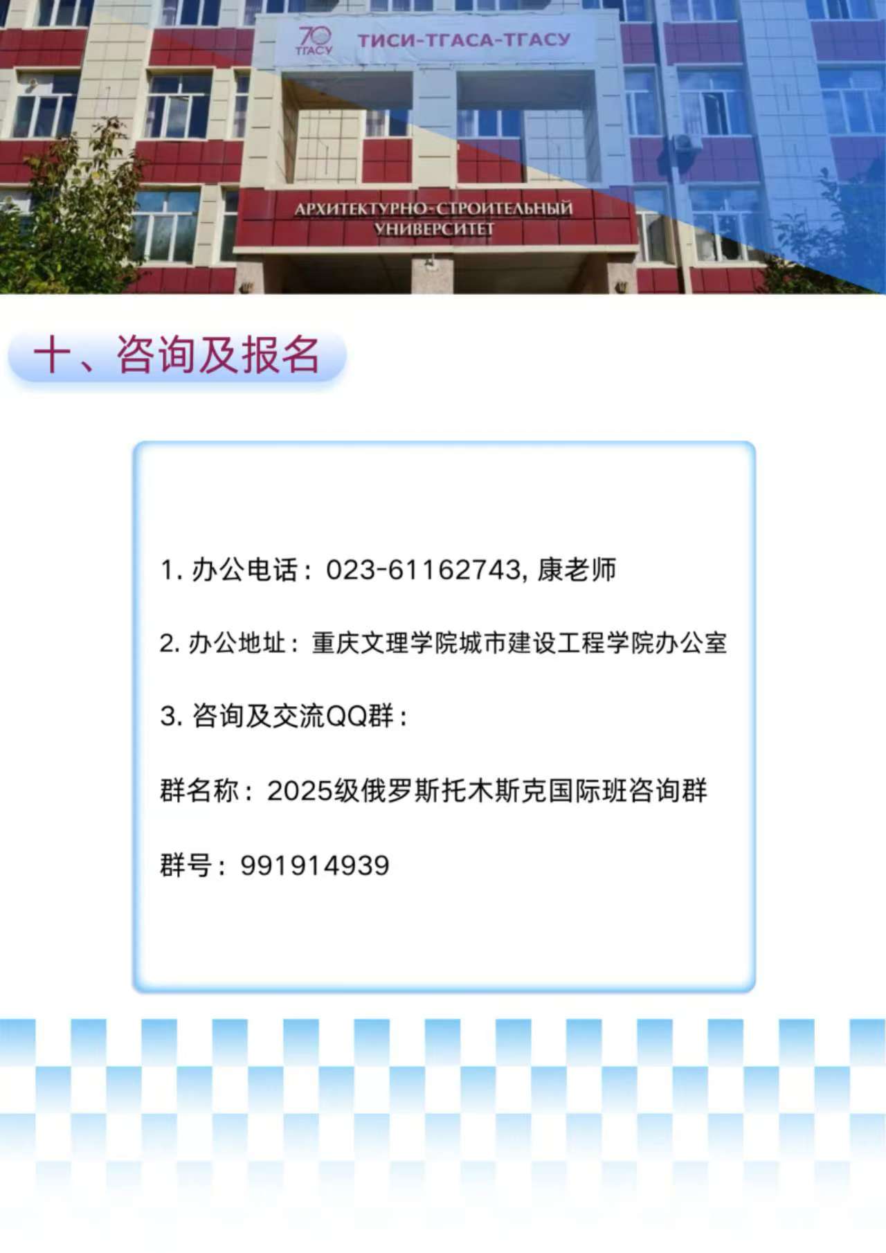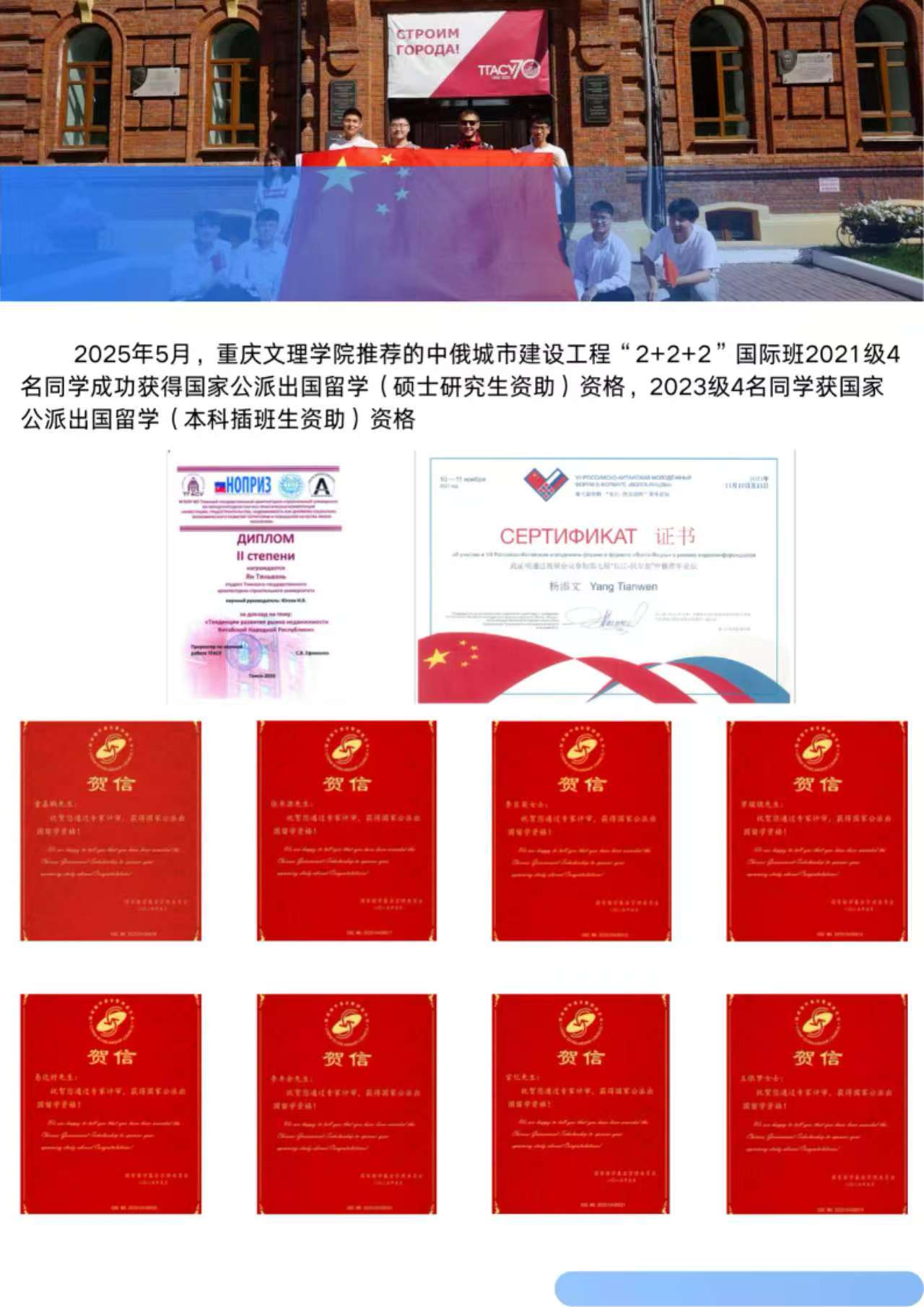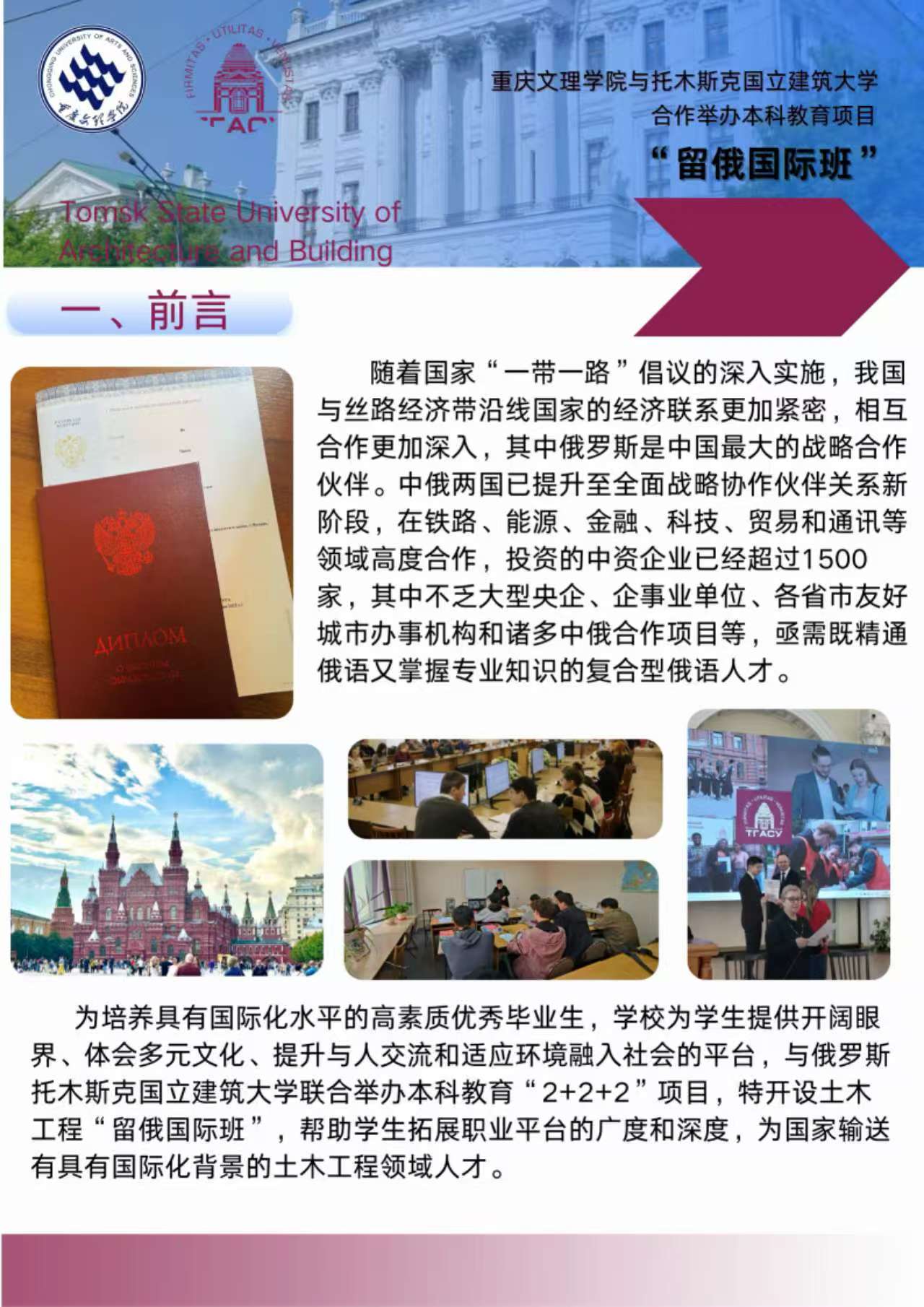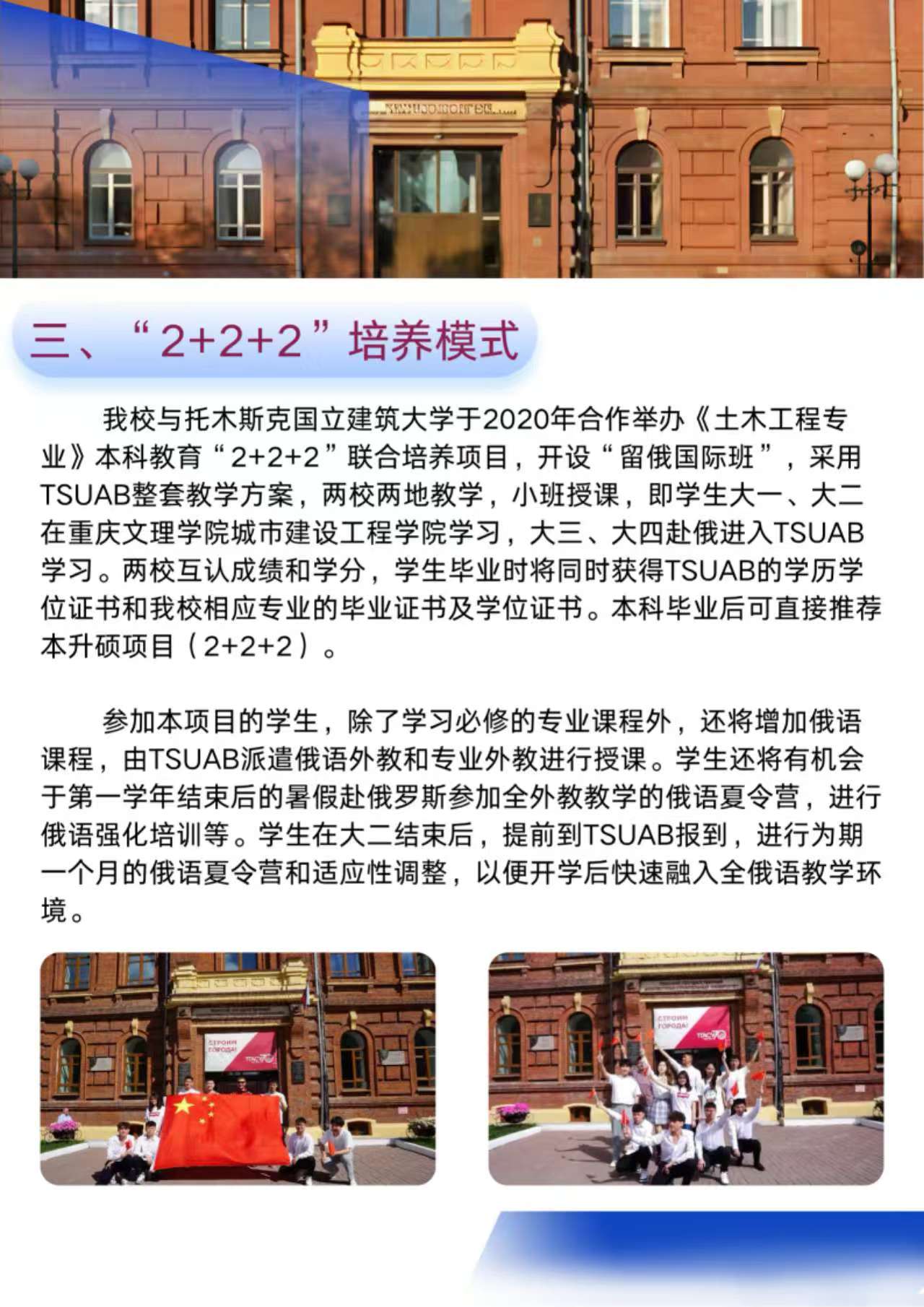 重庆文理学院 托木斯克国立建筑大学 本科教育“2+2+2”项目招生简章